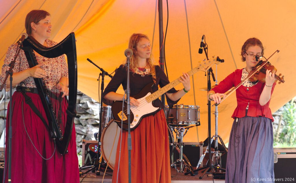 Van de zee, het vlakke land en haar nuchtere bewoners zingen deze olijke grieten. Over het zware werk, de mondige vrouwen, maar ook de feesten en klompendansen. Voddemoêr is een gloed nieuwe Nederlandstalige folkband gestart door de zussen Robin & Marijn. Met krachtig harp-spel (Anouk), een sterke melodische sectie van blokfluit (Remy) met viool (Marijn), drijvende basgitaar (Robin) en natuurlijk de kraakheldere vocalen van de twee zussen schetsen zij een levendig beeld van het Nederland van de voorbijgegane eeuwen. Stof je klompen af en dans met ons mee!